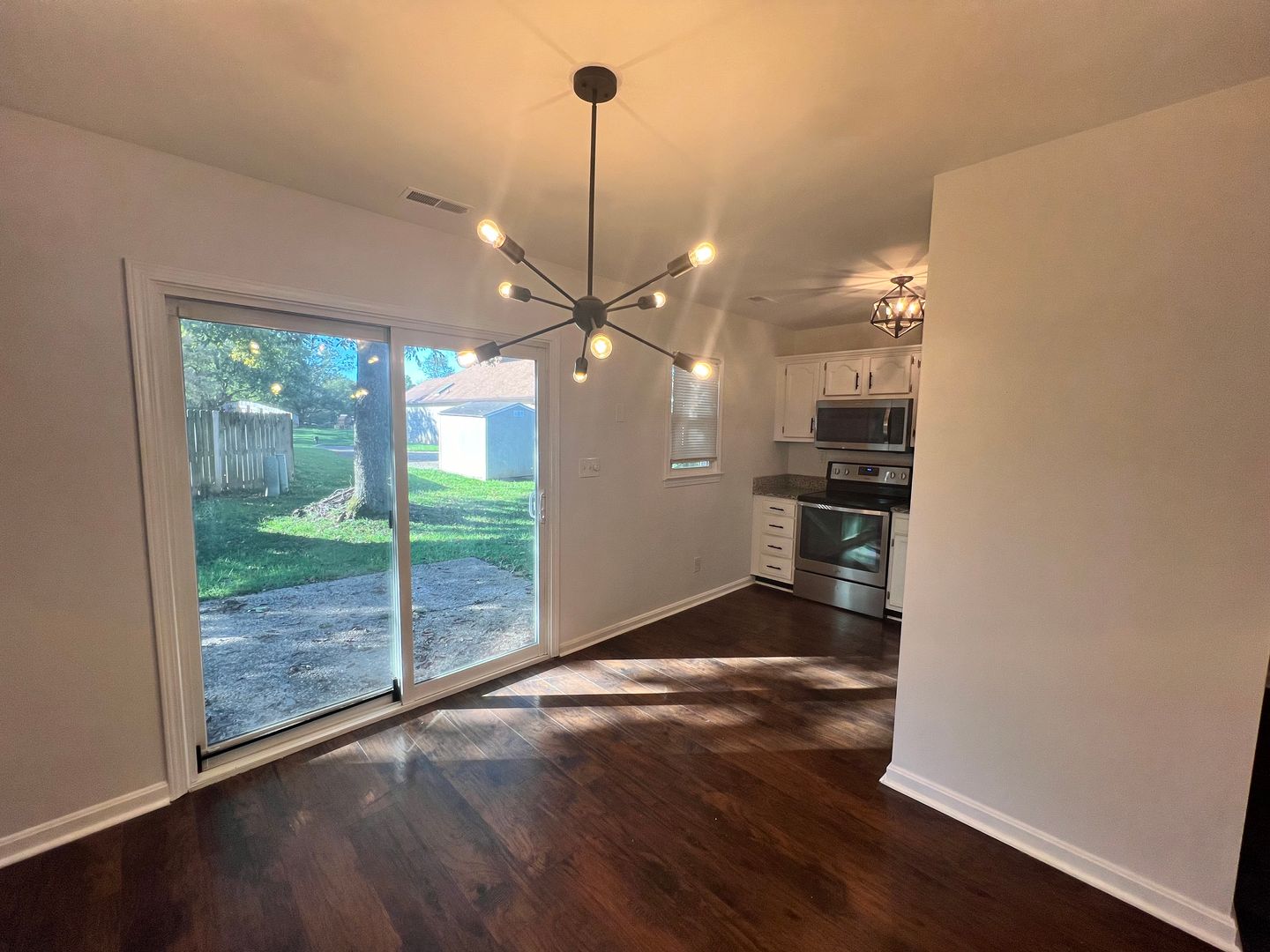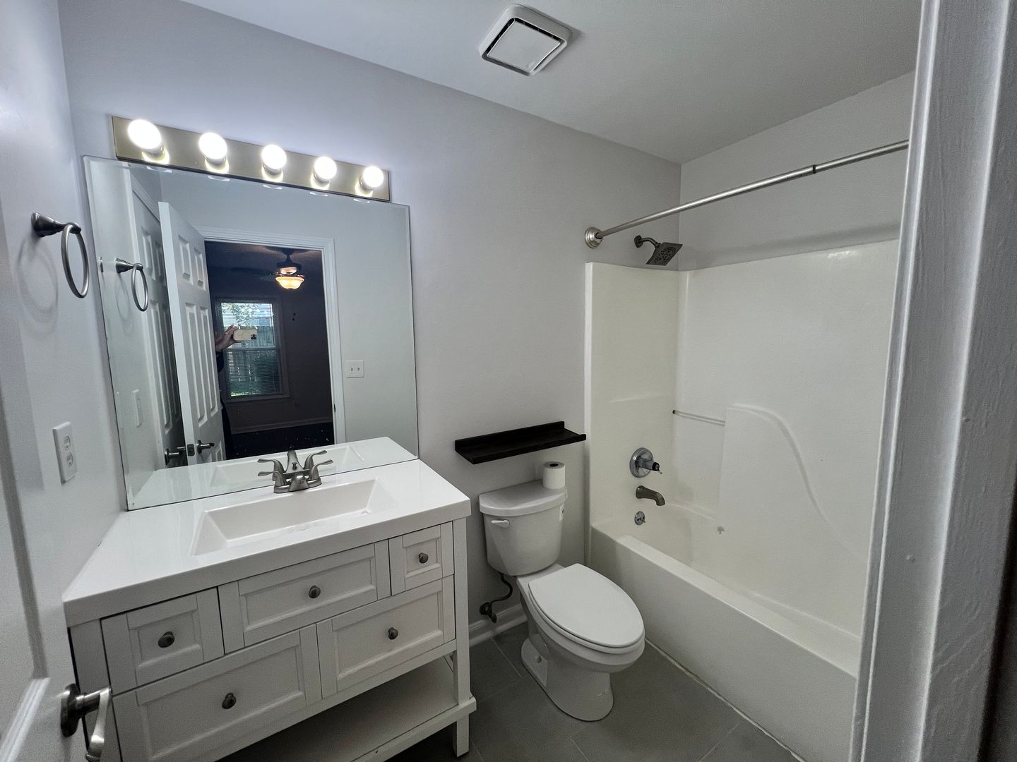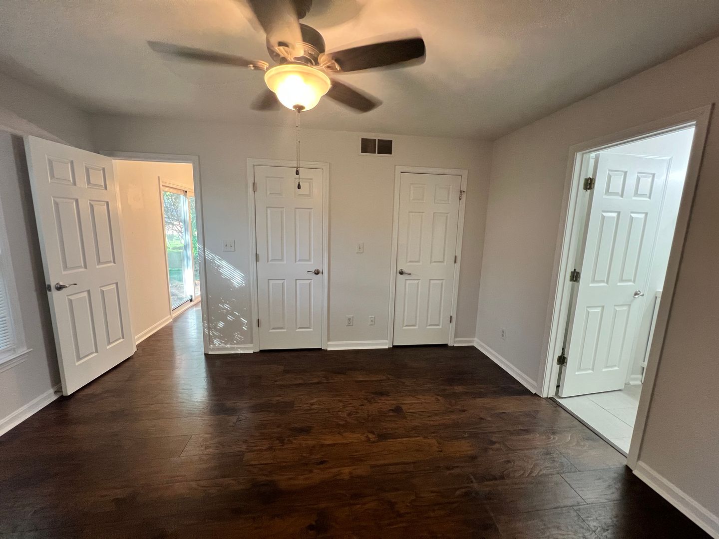 Updated 2 bedroom 2 bath home in Bay Colony! You will love the vaulted great room which offers a spacious, open feel and flows to the dining room and kitchen. The kitchen boasts stainless appliances, granite countertops, and clean white cabinetry. The primary bedroom has a private full bath and two closets. Both bathrooms have updated vanities, tile flooring, and updated fixtures. The floors throughout Laminate dark hardwood. Outside the kitchen, your patio is perfect for outdoor entertaining. Spacious 2-car garage with lots of built-ins, an exterior door to the rear, and pull-down attic with additional storage! Great location close to shopping, restaurants, hospitals, and interstates!